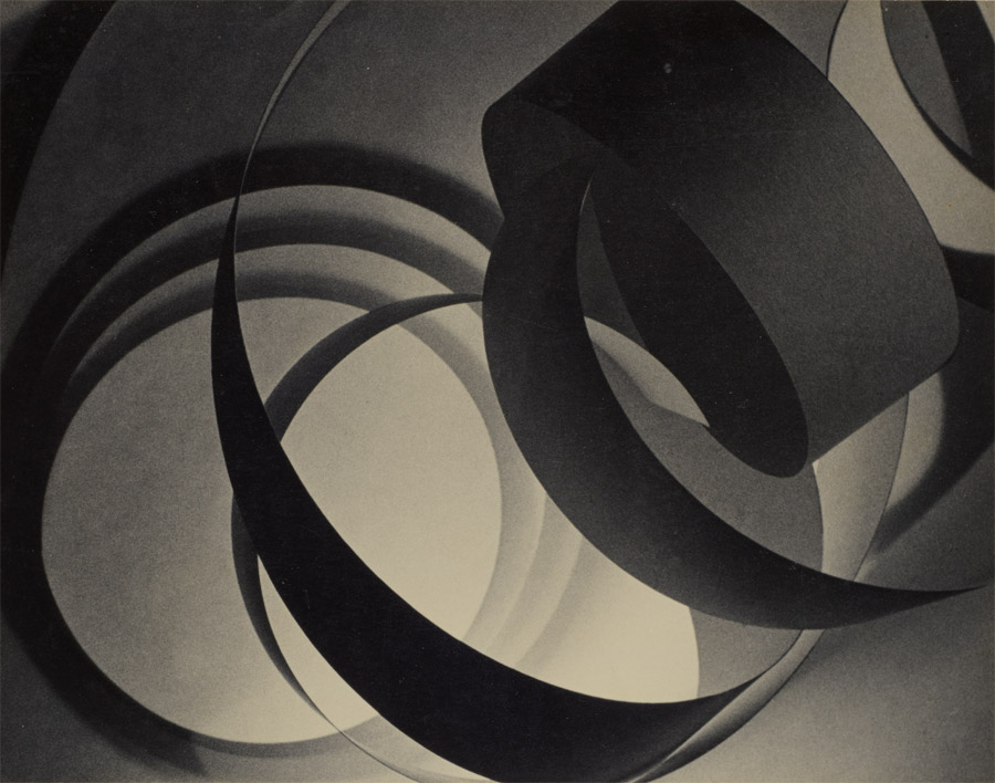 福士(以下F):まず1室目はニューバウハウス時代の作品が並んでいます。モホイ=ナジの「写真は光の造形である」という言葉にあるように、ロールした紙に光を当てて明暗のグラデーションを作るなど実験的な作品を多く生み出していました。